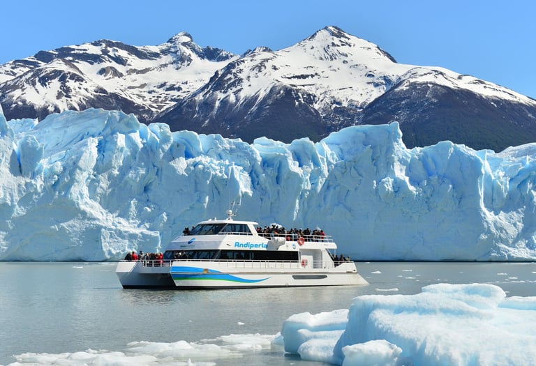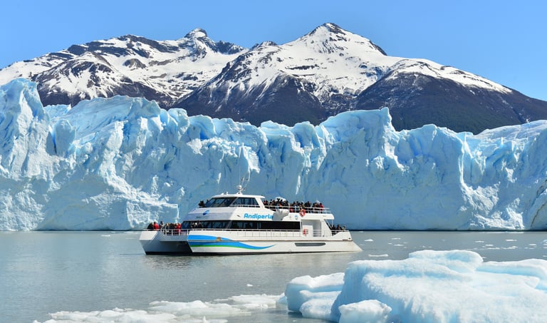 Dia 13 - Navegacion Lago Argentino | Glaciar Perito Moreno: Comenzaremos con una navegación opcional por el Lago Argentino, donde se pueden ver témpanos flotantes y, según el recorrido, los glaciares Spegazzini y Upsala. Luego visitaremos el imponente glaciar Perito Moreno en el Parque Nacional Los Glaciares, con tiempo para recorrer sus pasarelas y admirar posibles desprendimientos. También se ofrecen caminatas sobre el hielo con final simbólico y navegaciones cercanas para apreciar su magnitud desde el agua.