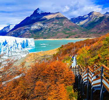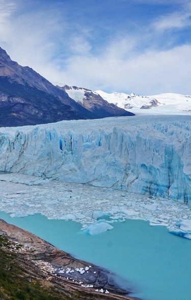 El Glaciar Perito Moreno, ubicado en el Parque Nacional Los Glaciares, es una de las maravillas naturales más impresionantes de la Patagonia Argentina. Con más de 60 metros de altura y 5 km de ancho, es uno de los pocos glaciares en el mundo que sigue avanzando, generando espectaculares desprendimientos de hielo.