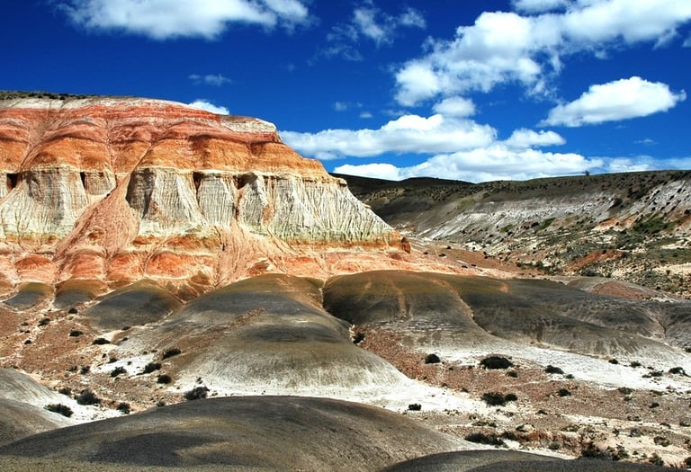 Comienza el viaje desde Comodoro Rivadavia y hacia el Bosque Petrificado de Sarmiento, ubicado a unas 3 horas en coche. Este sitio es famoso por sus árboles petrificados de más de 70 millones de años, vestigios de un antiguo bosque subtropical. Aquí podrás caminar entre los troncos fosilizados y aprender sobre el proceso de petrificación en su centro de interpretación.